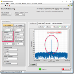この 「Frequency」は USRP-RIO が受信または送信する信号の中心周波数の設定になります。